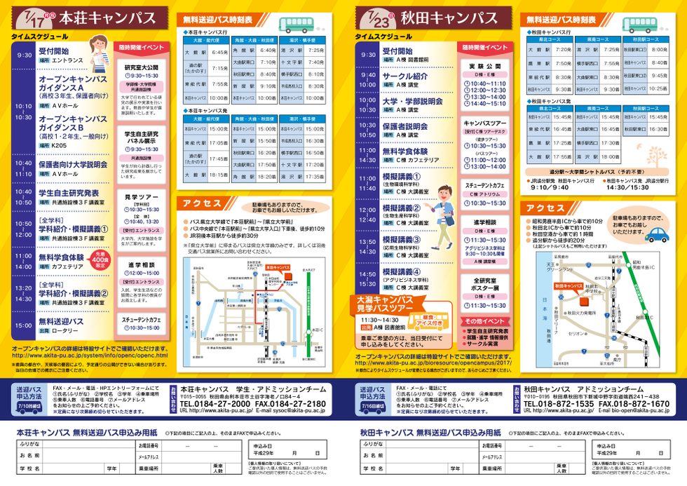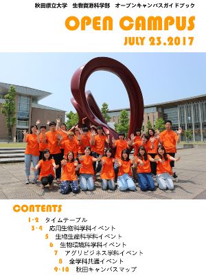 秋田県立大学・生物資源科学部のオープンキャンパスは、 2017年7月23日(日)に開催します。