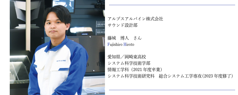 私は音響工学について学びたいと思い、秋田県立大学に進学しました。特に大学4年生から大学院2年生までの3年間は先生方や研究室の仲間にも恵まれ、音響工学について学びながら充実した毎日を過ごすことができました。大学院の最後の年には2度アメリカへ行く機会もあり、学生のうちに海外の文化に直接触れられたことは大きな学びになりました。