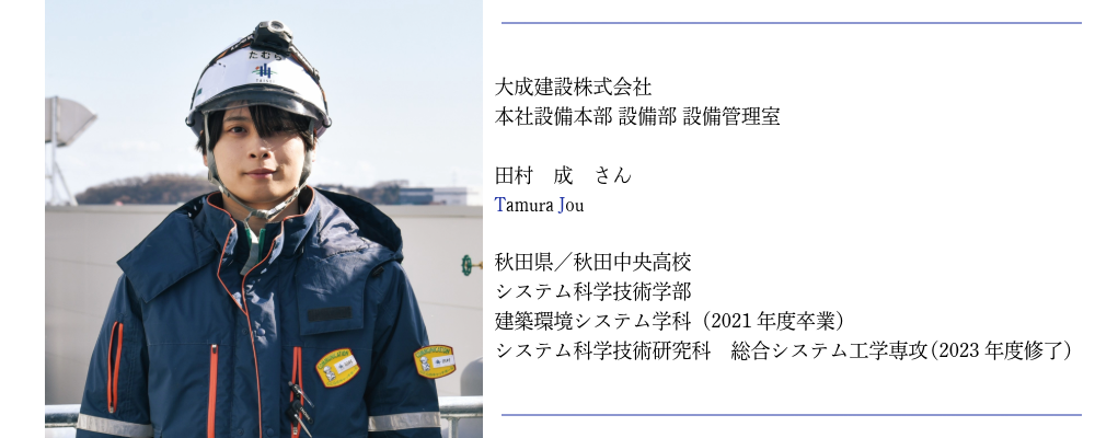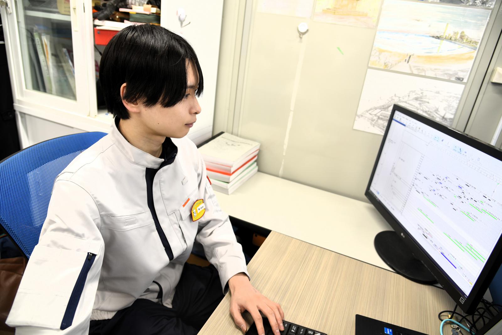 現在は設備の施工管理として2年目で、2年目の1年間は設備設計も経験する予定です。その後は、施工管理と設備設計のどちらかに配属されることになっています。業務では、自分が指示したものが日ごとに形になっていくのを実際に見ることができるため、やりがいがあり、とても充実した日々を過ごしています。普段は見ることのできない建物の裏側を実際に観察できることも建設業の魅力で、日々の新しい発見が自分の学びとなっています。また、社員の方々をはじめ、サブコンの方々や職人さん同士が仲良く、とても働きやすい環境です。