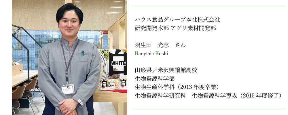 現在携わっている「タマネギ」という植物の研究は、まさに大学での学びが活かされている仕事です。たとえ研究テーマや業務内容が変わったとしても、大学時代に培った物事に取り組む姿勢や、出会った先生や仲間の存在は、仕事においても、人生においても、かけがえのない財産であり、大きな支えとなっています。