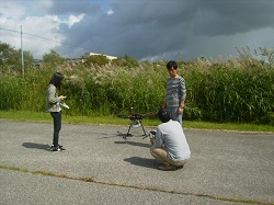 【飛行試験を実施している様子】 | 【温室効果ガスを観測中のドローン】 |