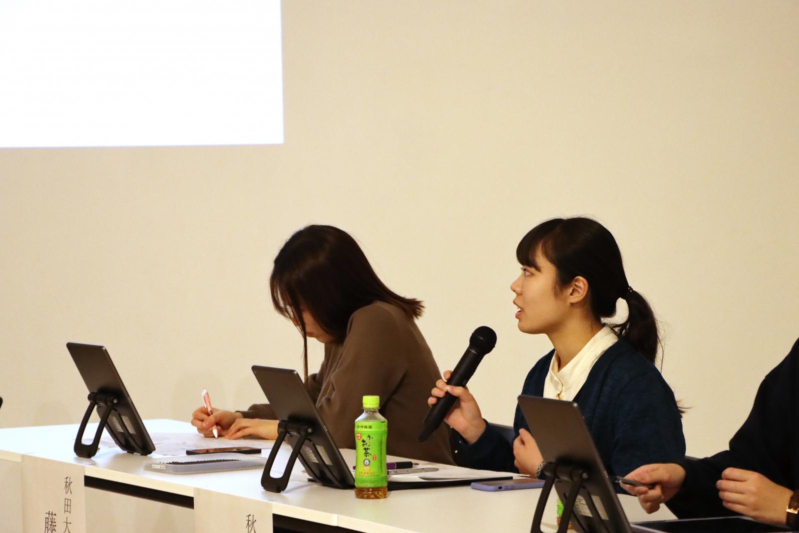 当日は、高校生など一般の聴講者も参加(約30名)しており、大学卒業後の進路や、発表を聴いて感じた疑問点を直接大学生へ質問できる機会となりました。