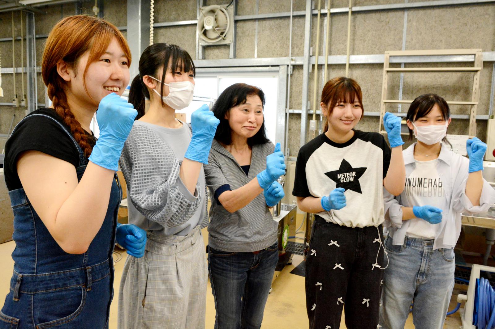 シニア大学生の佐々木裕子さん(69歳)は応用生物科学科1年生の学生自主研究グループ「Rice&Bread ライスアンドブレッド」の学生と一緒に、製パン適性の高い野生酵母を用いた米粉パン作りに向け準備を進めています。