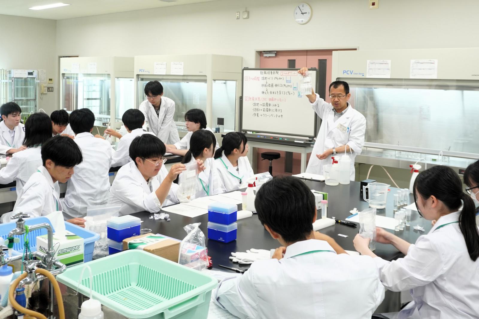 高校生の皆さんは、大学生さながら各実験室で高度な内容の講義と実験を体験しました。参加後は、「高校では体験できないような、専門的な講義を体験できた」「将来の進路を考えるきっかけになった」といった感想があがりました。生物と化学の奥深さを知ると同時に、より生物資源の世界に興味を深める機会となったと思います。