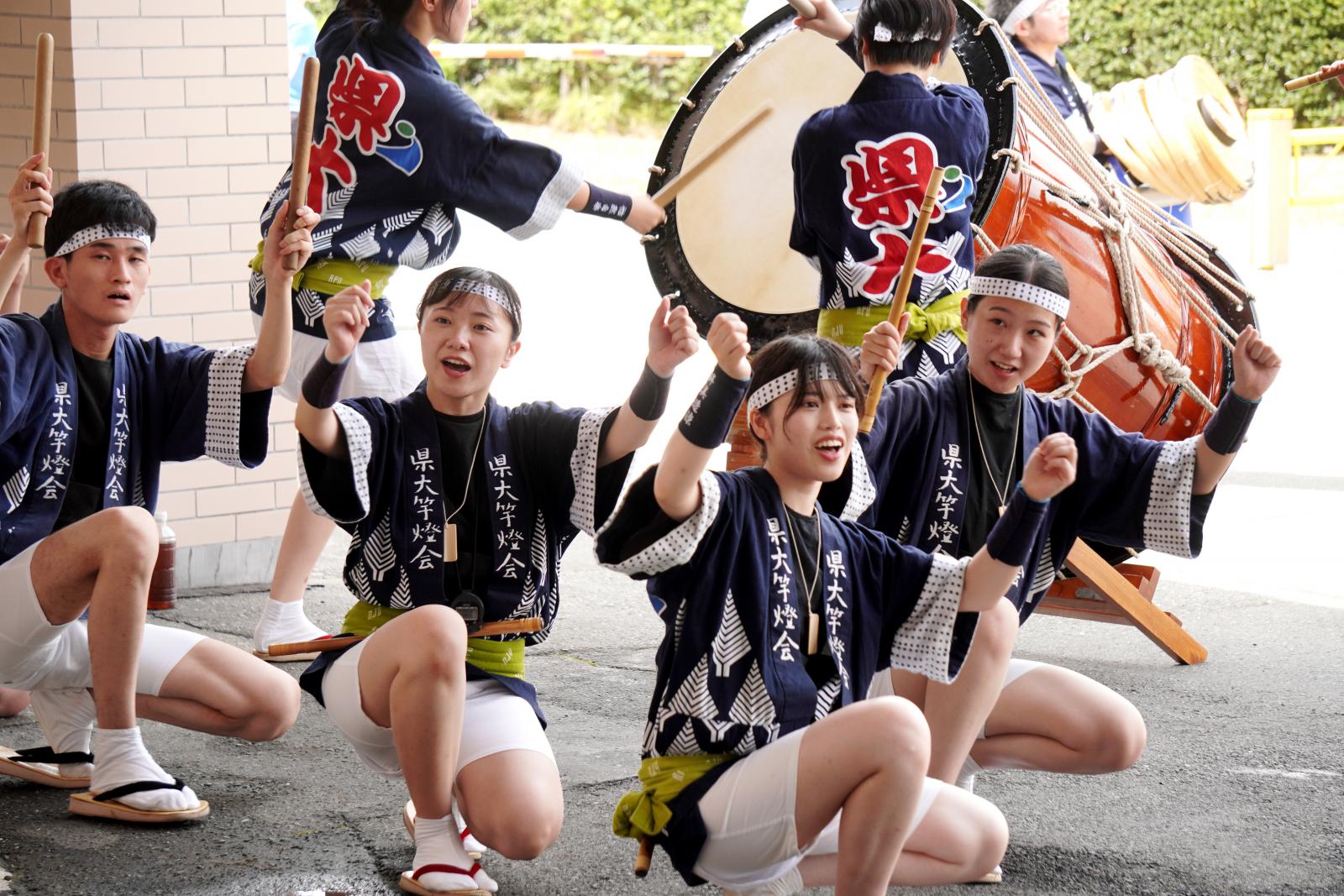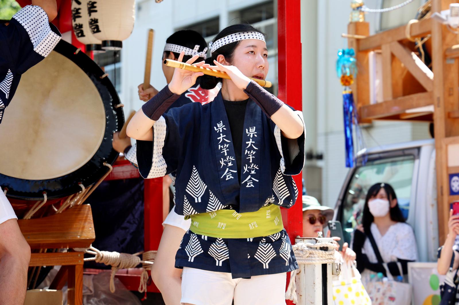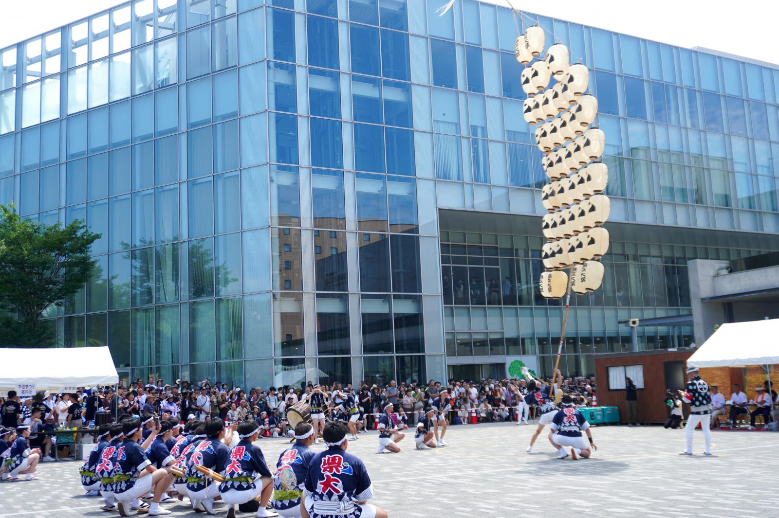 竿燈大通りで行われた夜竿燈では熱のこもった演技を披露して、県大の大若提灯が、夜空に美しい光の稲穂を実らせました。また、秋田駅前アゴラ広場や秋田県庁前での合同出竿でも、県内外から集まった観客を魅了、たくさんのお客様から温かい声援をいただき大変励みになりました。今後も、秋田県立大学竿燈会へのご支援のほどよろしくお願いいたします。