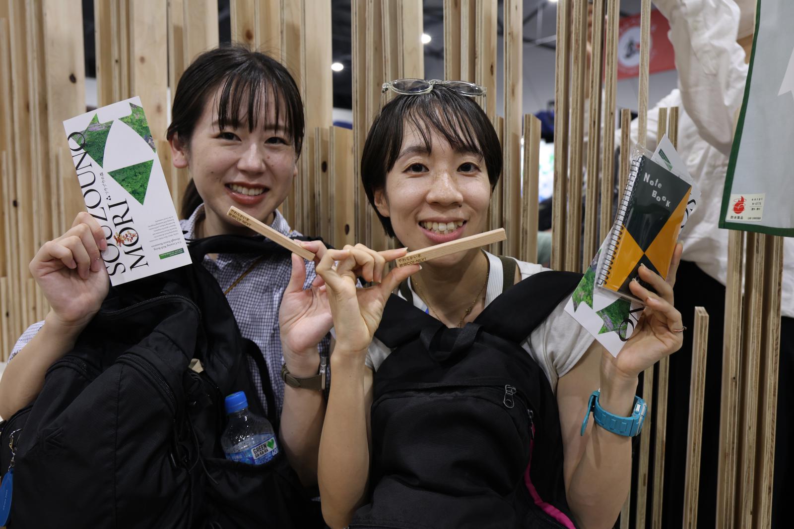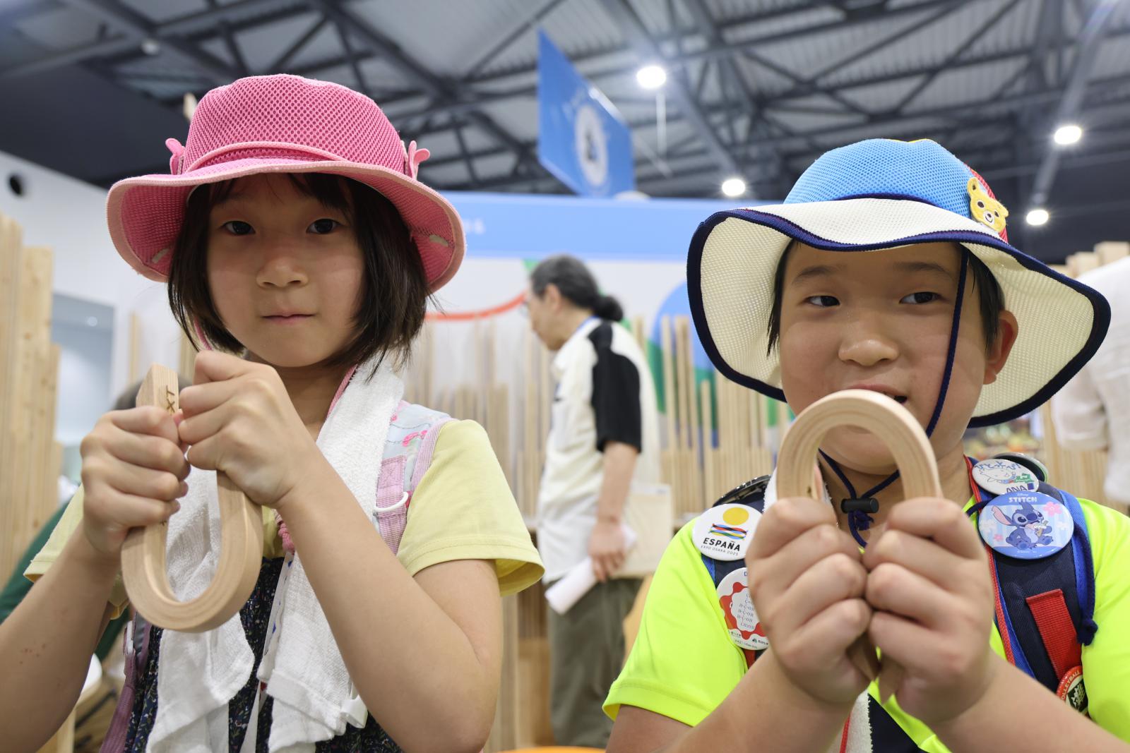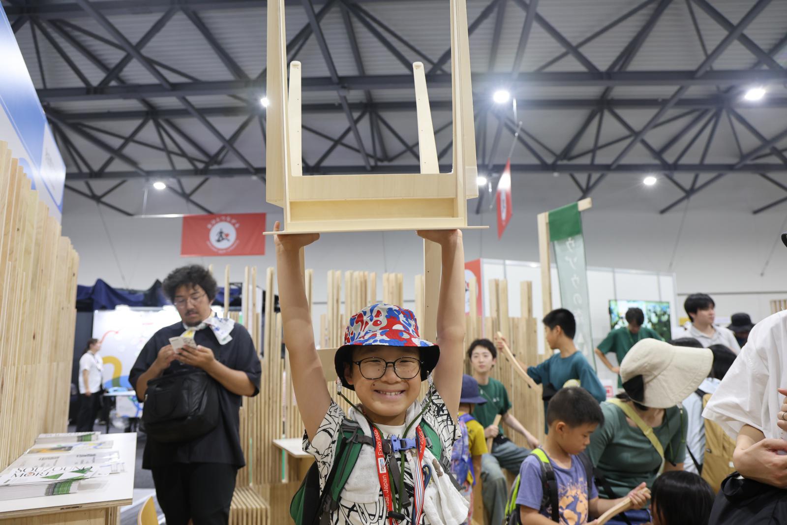 イベント期間は夏休みということもあり、ご家族連れの方を中心に、全国、そして世界から多くの方が訪れてくださいました。特に、薄い木の板を特殊な接着剤で固め、手で簡単に曲げることのできる「やわらかい木」や、木材の特殊な構造によるユニークな座り心地の「バネバネの木の椅子」、そして重さわずか1.1kgと世界⼀軽量な⽊⼯椅⼦「折り紙チェアー(秋田公立美術大学による出展)」など、触って体験いただける木材加工品は大好評。体験いただいた方からは、「マジックみたい!」「面白い!」とたくさんの嬉しい声をいただきました。