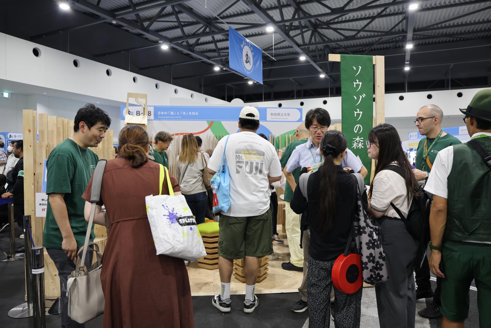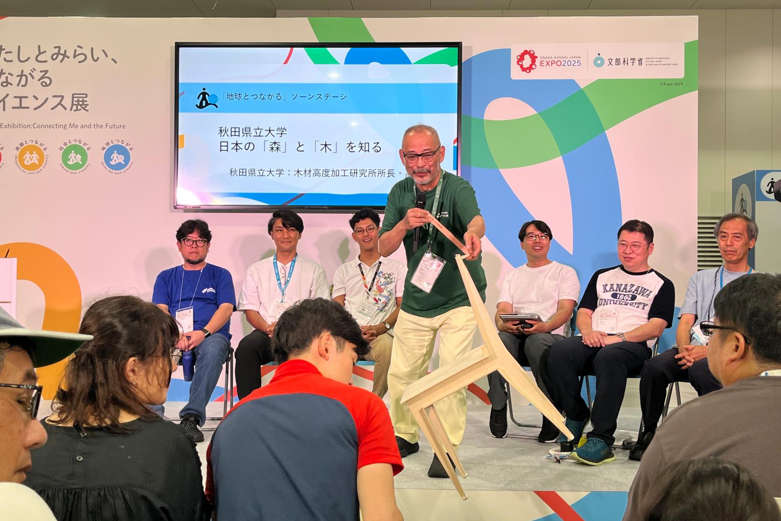 イベントは「大阪・関西万博会場(夢洲)EXPO メッセ「WASSE」」を会場に、「自分とつながる」「周囲とつながる」「社会とつながる」「地球とつながる」の4つのゾーンで構成。本学は「地球とつながる」ゾーンにて『日本の「森」と「木」を知る』をテーマに、秋田COI-NEXT「ソウゾウの森」プロジェクトの参画機関である公立大学法人国際教養大学、公立大学法人秋田公立美術大学とともに最先端の研究成果を披露しました。
