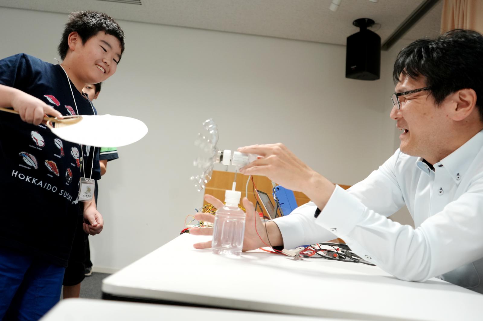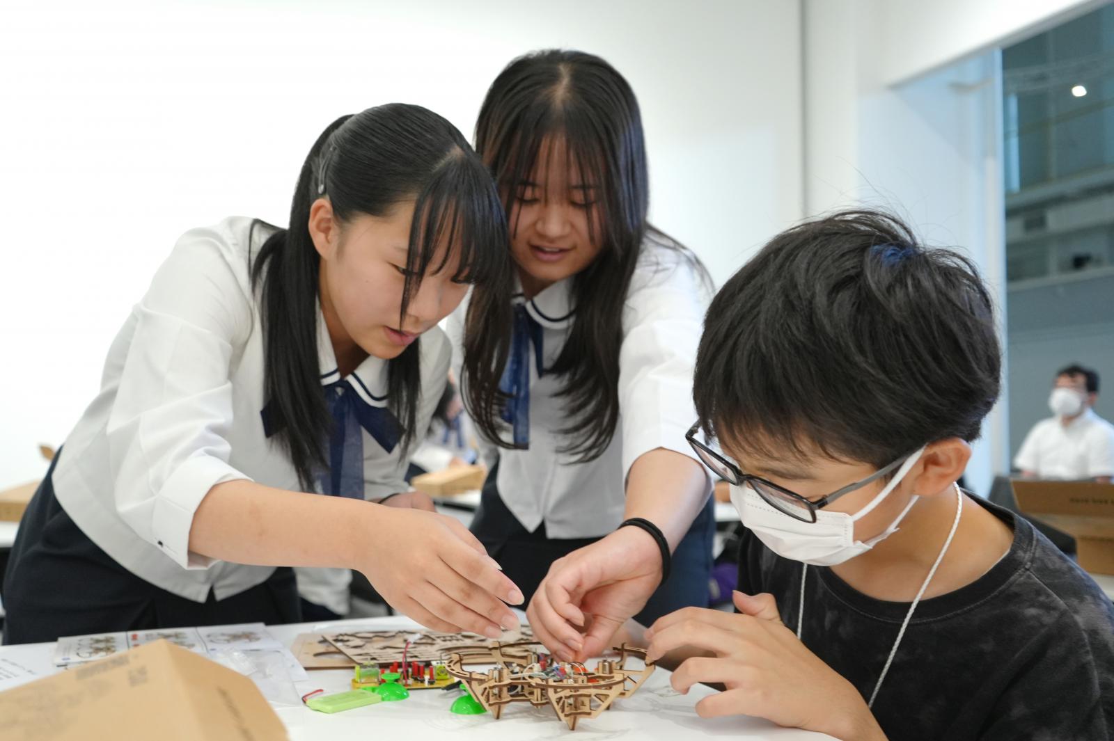 本事業は、理科好きの子どもを増やし、将来の秋田県の産業やテクノロジーを支える人材を育てることを目的とする全県一区のバーチャル科学部「あきたサイエンスクラブ」の受託事業として実施しました。また当日は、本事業を受講していた秋田北高校の2年生14名が児童のサポート役を務めました。