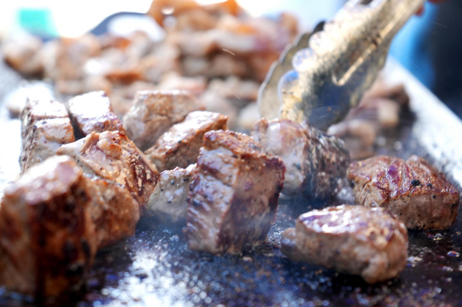 10月4日(土)~5日(日)、秋田市のエリアなかいち特設会場で「ABSまつり2025」が開催され、秋田県立大学短角牛ブランド「がたべこ」を初出展しました。当日は、学生が愛情を込めて育てた「がたべこ」のサイコロステーキとばら肉の焼肉販売を行いました。両日とも開場と同時に長蛇の列ができ、途切れることなく大変な賑わいとなりました。多くの方々に、低脂肪・高たんぱく・ヘルシーで栄養価が高い「がたべこ」の美味しさを存分に味わっていただくことができました。