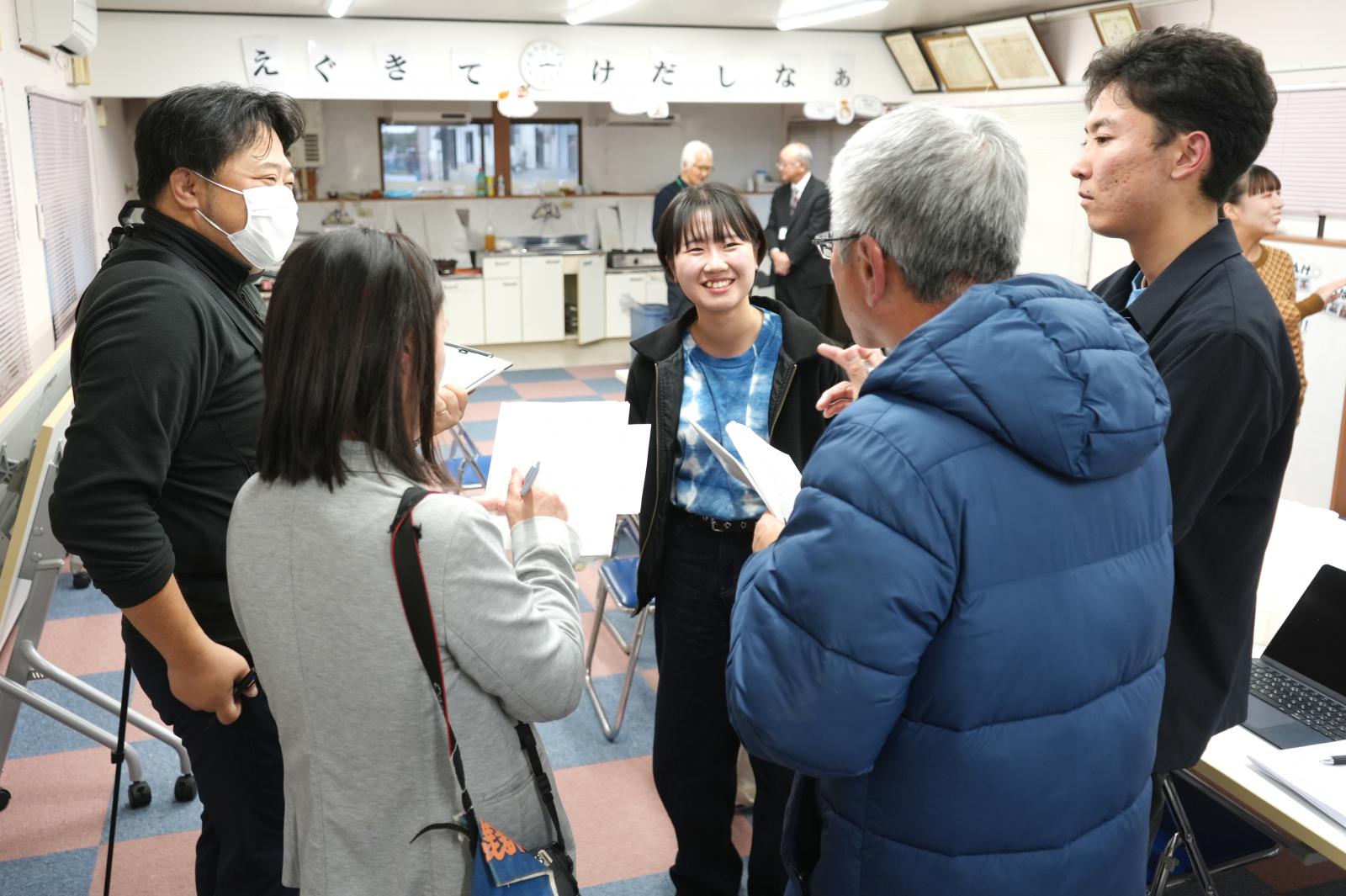 これに対し石垣会長は、「漬物の種類や農作物の出来具合により、漬け込む期間が違う部分も考慮した方が良い。」などとアドバイスをいただいた他、これまでは会員農家に任せきりにしていたが、学生の提案を導入した場合、農産物が常に店頭に並べられるだけではなく、ユニークで特徴的な漬物を並べられるかもしれない、と大きな期待を寄せていました。意見交換を終え、佐々木代表取締役は「漬物加工所をどう効率的に運営していくかが最大の課題です。こうした若い世代が、自分たちでは思いつかない斬新な発想で色々提案してくれて本当に有難いです。私たちにとって大きな力になっています!」とお話くださいました。学生たちは、意見交換で出された内容を踏まえ、解決策をブラッシュアップしたうえで、令和8年2月に直売所へ「陽気な母さんの店」に報告することにしています。なお、キャップストーンプロジェクトの最終の成果報告会は令和8年5月下旬頃を予定しています。